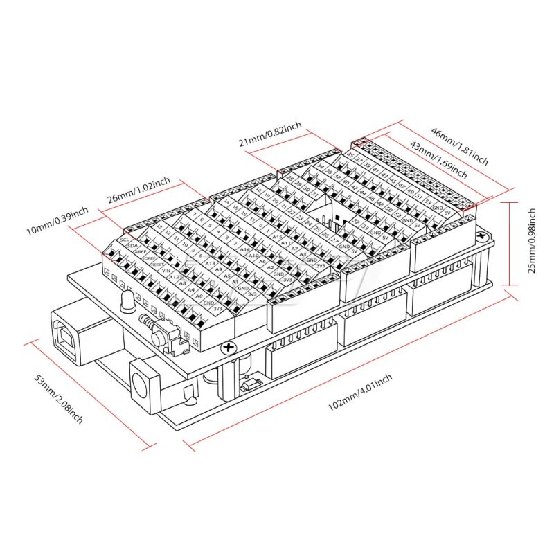 52Pi GPIO Terminal Block Expansion Module for Arduino Mega 2560 R3 quantity