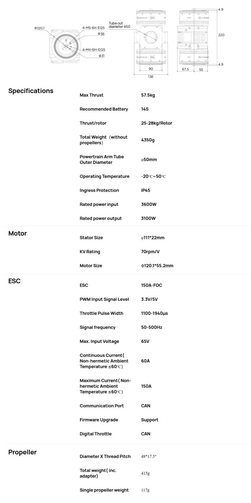 Input Voltage: 14S LiPo