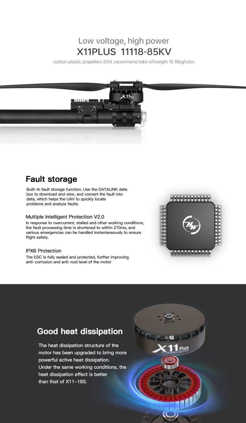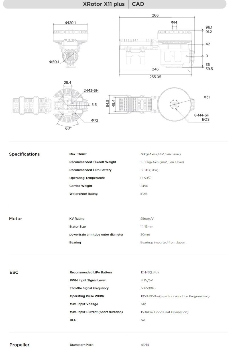 Hobbywing X11+ Motor ESC Combo with 43″ Folding Propeller