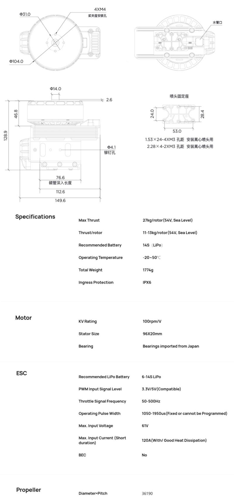 Hobbywing X9+ Motor ESC Combo with 36″ Propeller