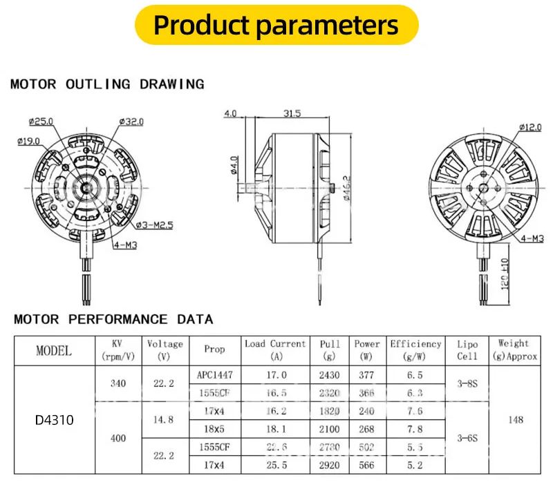 HSKRC D4310 400kV Brushless Motor for Multicopter/ VTOL